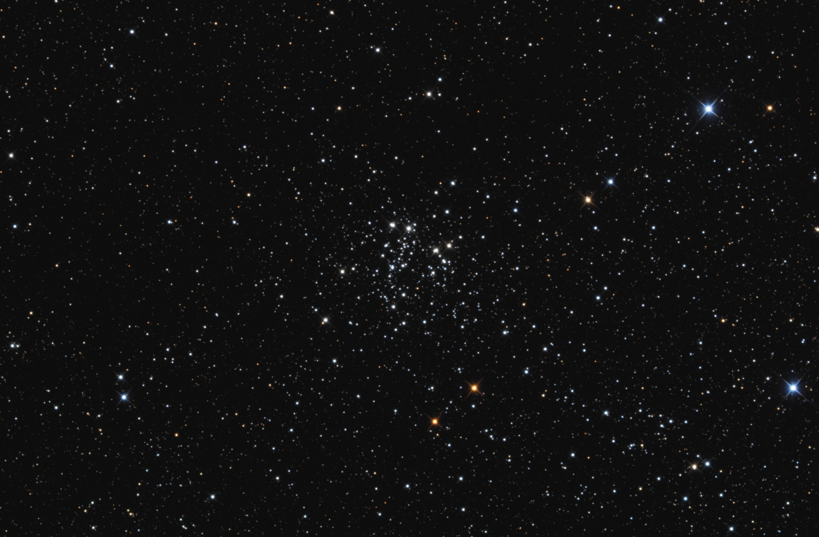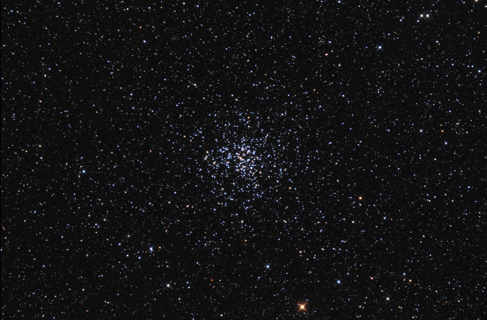 | 百個以上の恒星が集まっており、小型望遠鏡でもキラキラした粒状の星の集まりとして見えます。 |