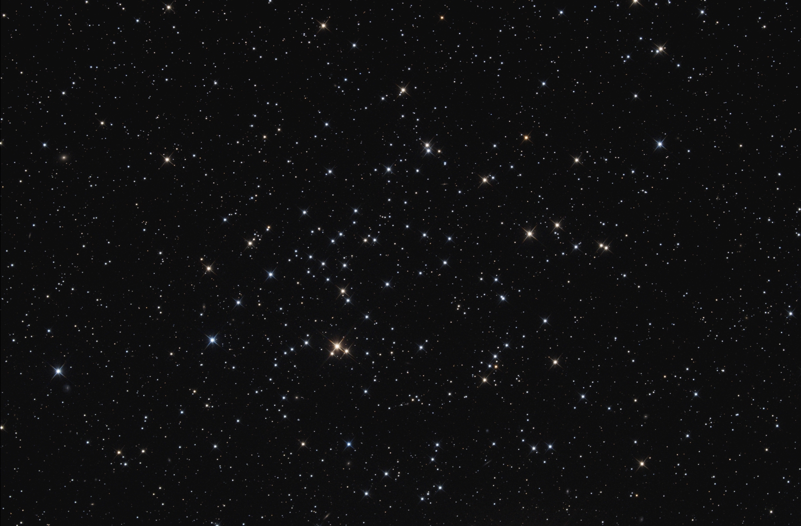 | 年齢は約2億年ほどの若い散開星団とされ、星団内には青白いB~A型星、黄色いF〜G型星などが多く含まれています。 |