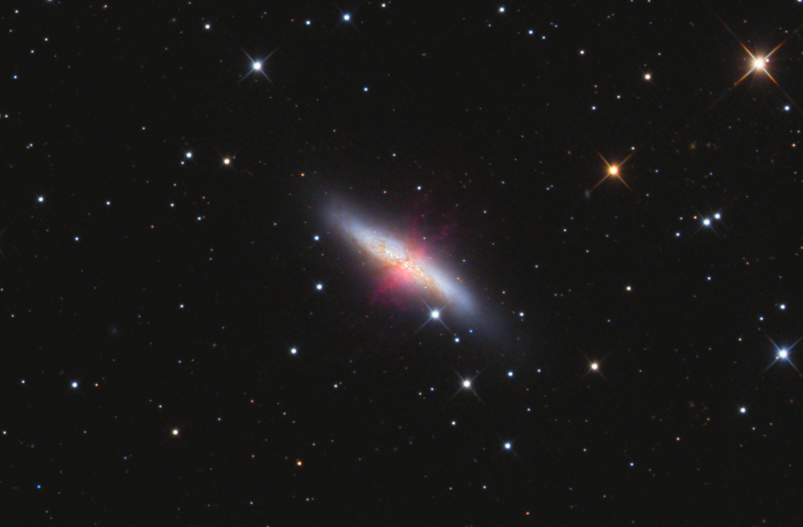 | 通常の銀河よりもはるかに速いペースで新しい星が生まれています。そのため、非常に明るく活動的な銀河です。 |