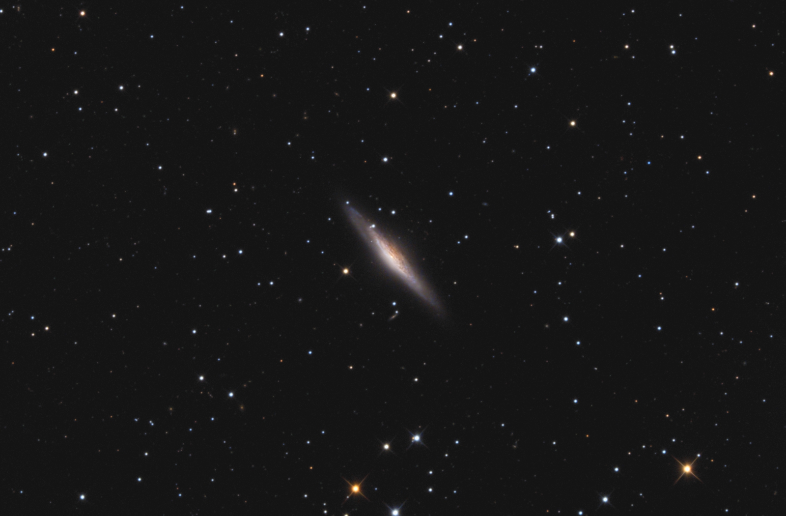 | 横から見た形が葉巻のように見えることから、葉巻銀河とも呼ばれます。 |