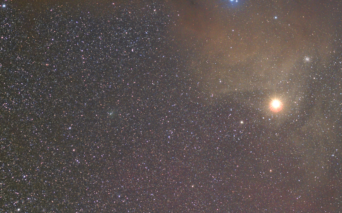 この日はアンタレス付近の星雲・星団群を撮影しようとしたのですが、撮影された画像を見るとアンタレスの東に彗星らしい天体が写っています。