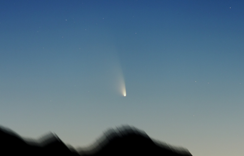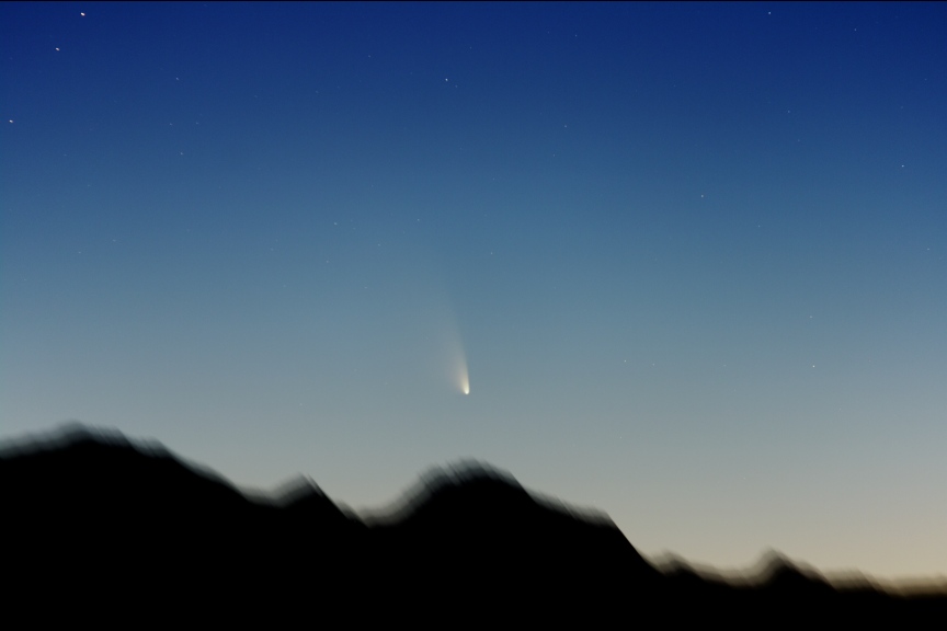 彗星の太陽からの離角がさらに大きくなり、薄明がかなり落ちる時刻まで彗星が見られるようになったため、露光時間も長くかけられるようになりました。