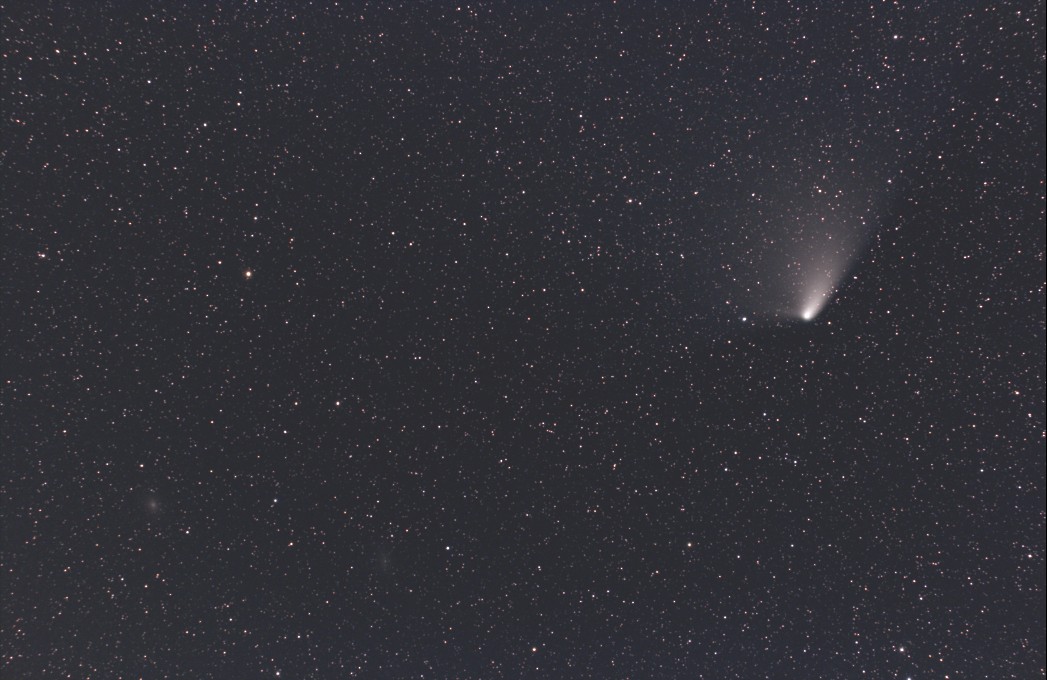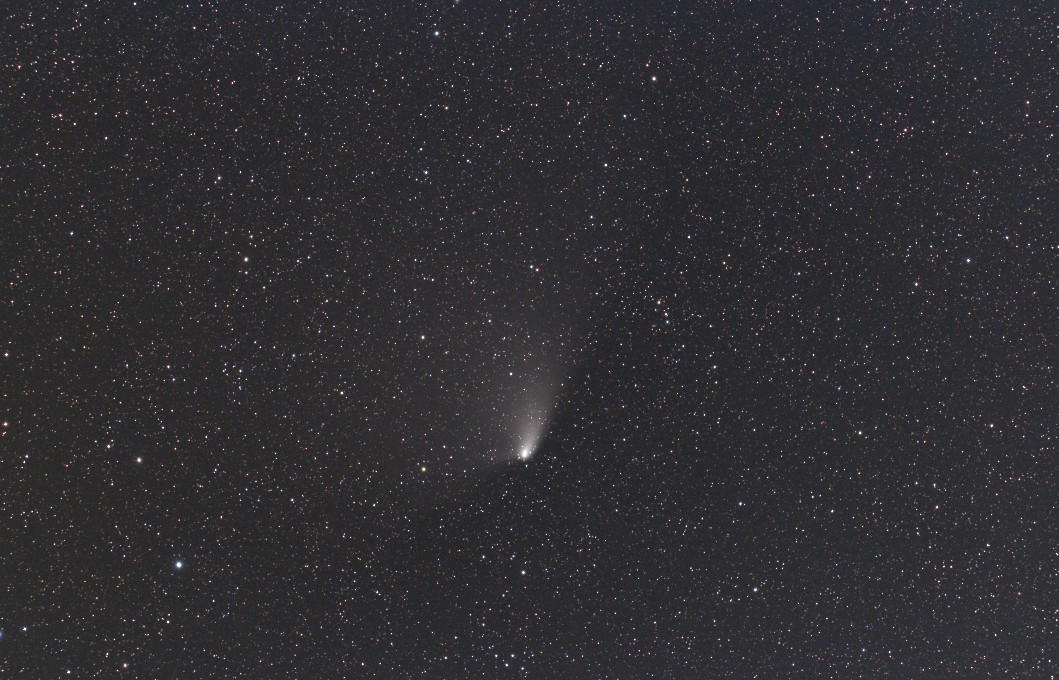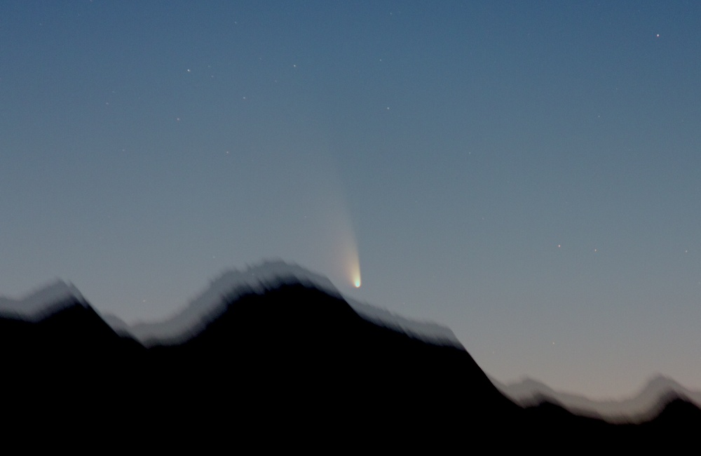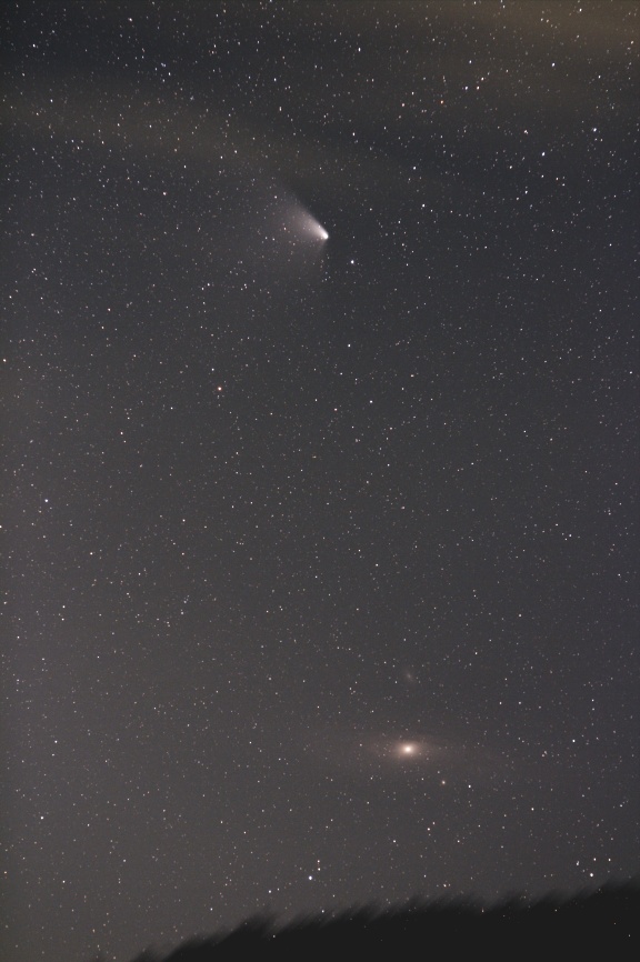 彗星の高度が昨日よりも上がり、遅い時刻まで撮影することができたので、尾もうっすらと写り始めました。