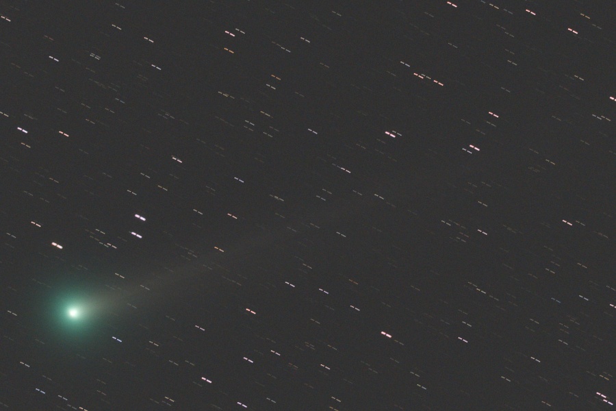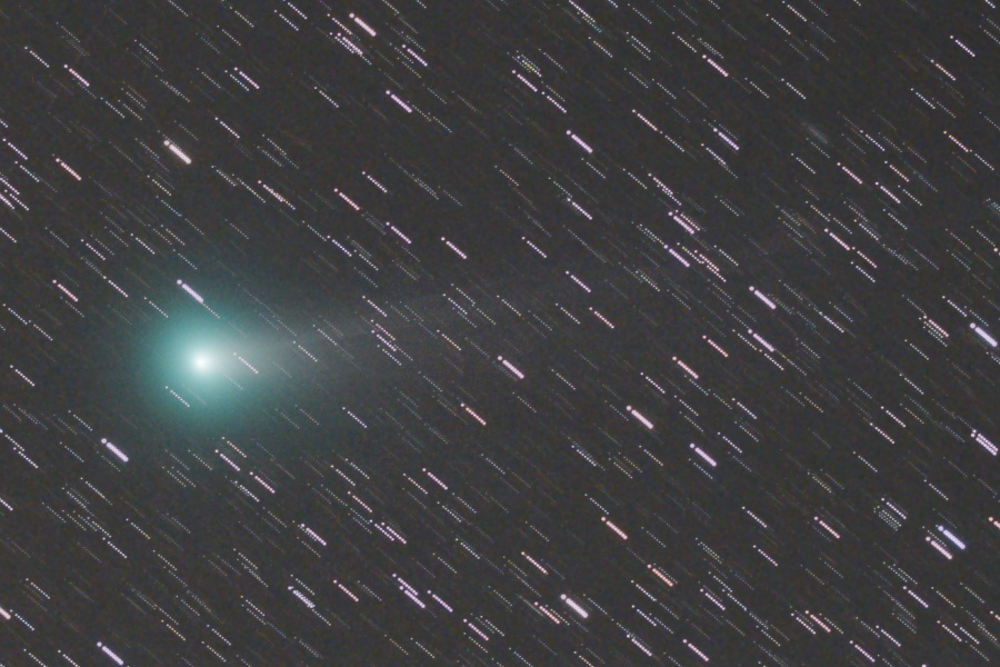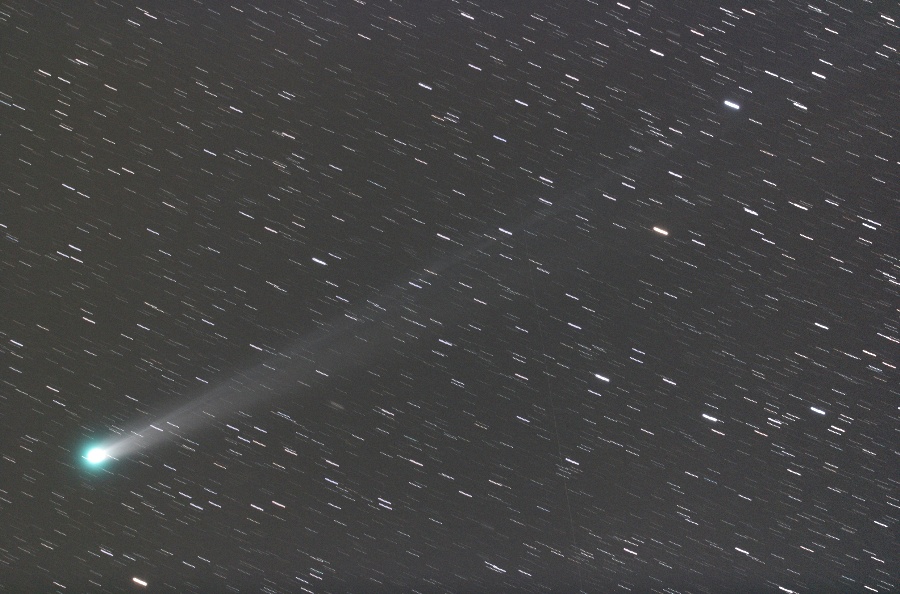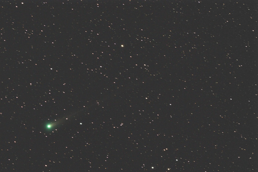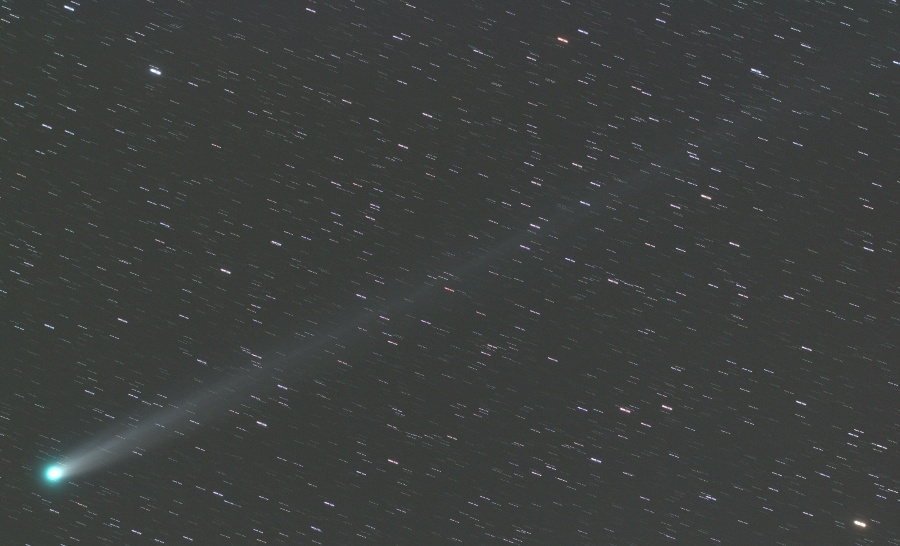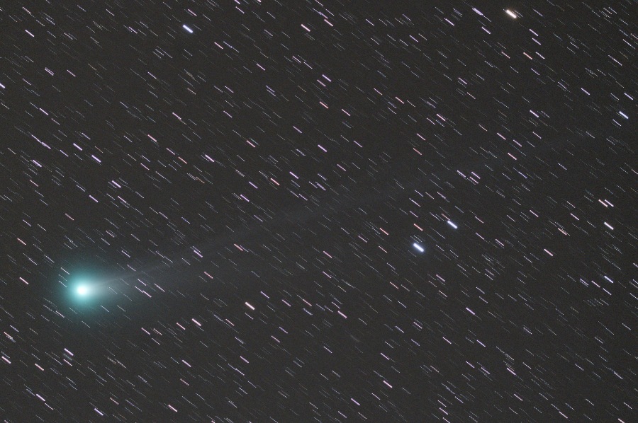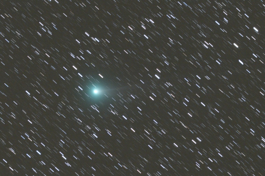 長いイオンテイルは画角からはみ出しています。ダストテイルも淡いながら伸びてきました。
